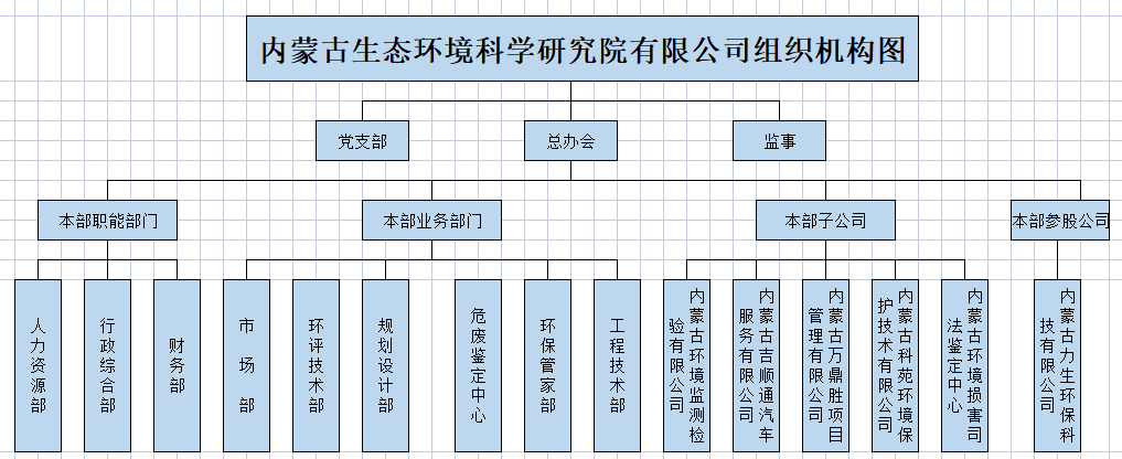 內(nèi)蒙古生態(tài)環(huán)境科學(xué)研究院有限公司是內(nèi)蒙古環(huán)保投資集團有限公司的全資子公司,成立于2001年,注冊資本金5000萬元。公司長期致力于環(huán)境服務(wù)和環(huán)境資源的可持續(xù)發(fā)展,是內(nèi)蒙古自治區(qū)生態(tài)環(huán)境保護服務(wù)領(lǐng)域的龍頭企業(yè)。公司作為引領(lǐng)全區(qū)的創(chuàng)新型環(huán)保企業(yè),公司團隊包含環(huán)境規(guī)劃、環(huán)境影響評價、流域綜合治理、環(huán)境監(jiān)理、環(huán)境工程、環(huán)保管家、環(huán)保技術(shù)研發(fā)、環(huán)境損害鑒定、環(huán)境監(jiān)測等領(lǐng)域眾多專家級人才。